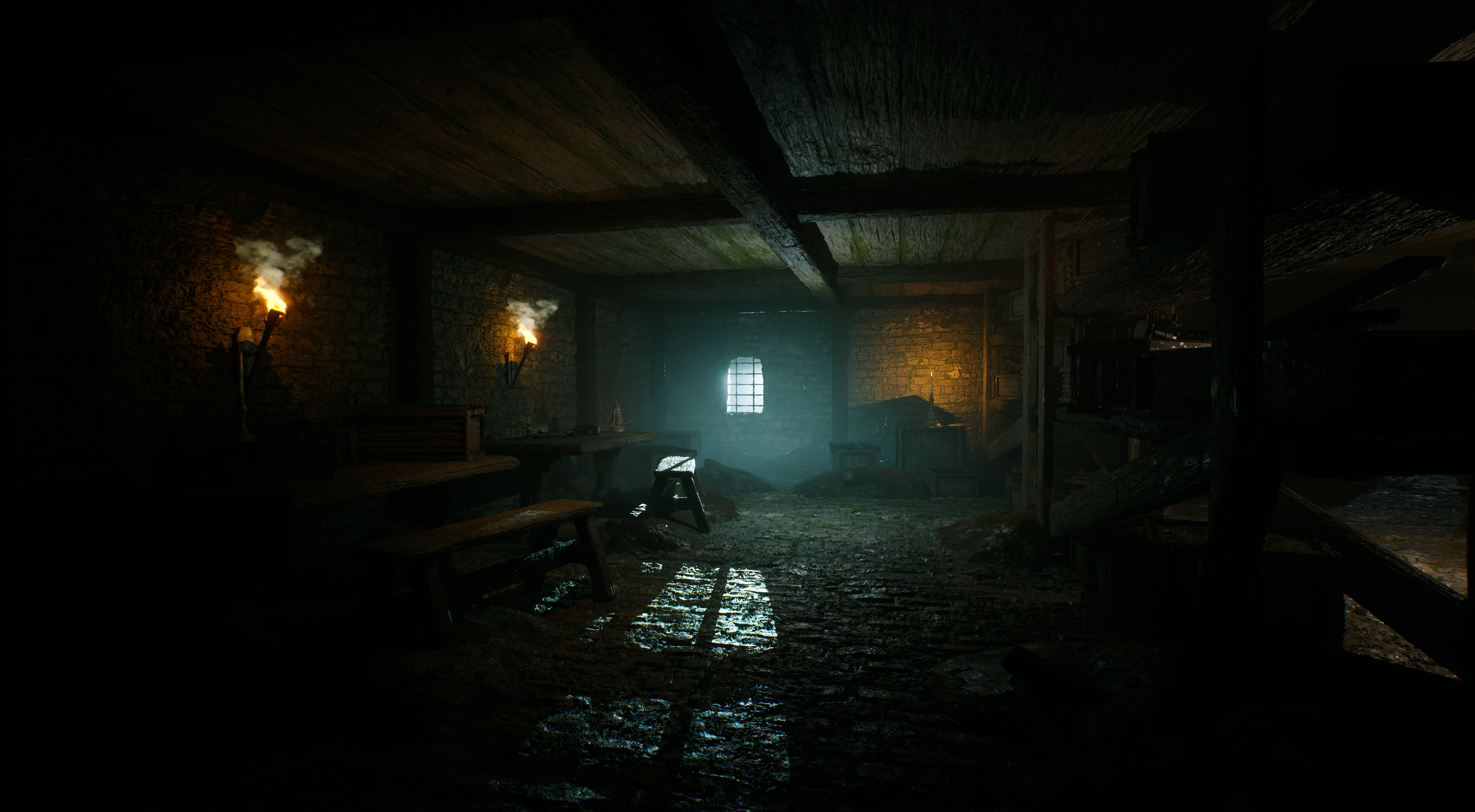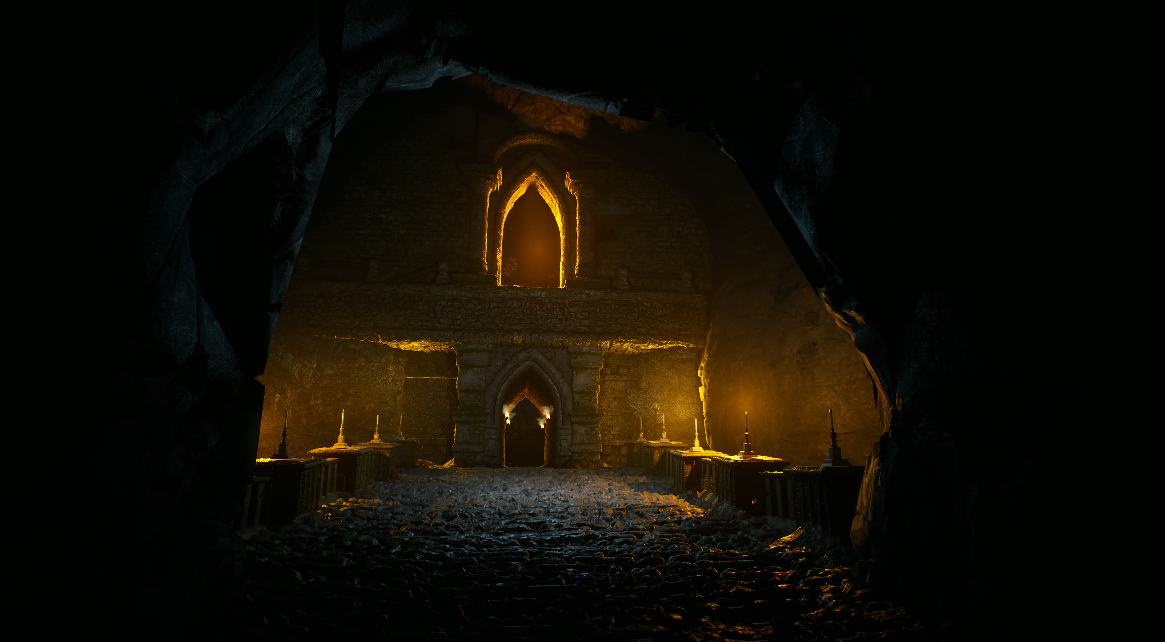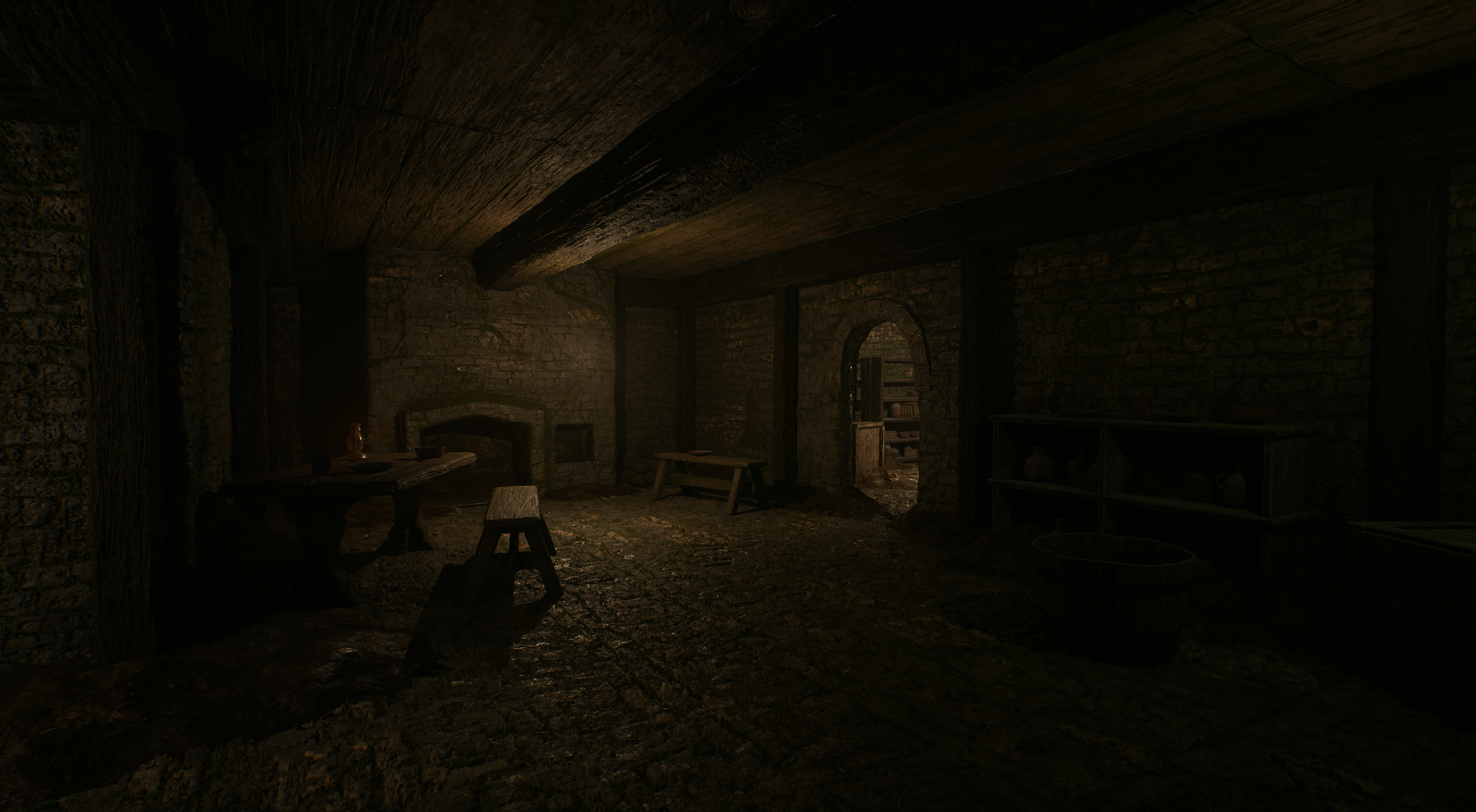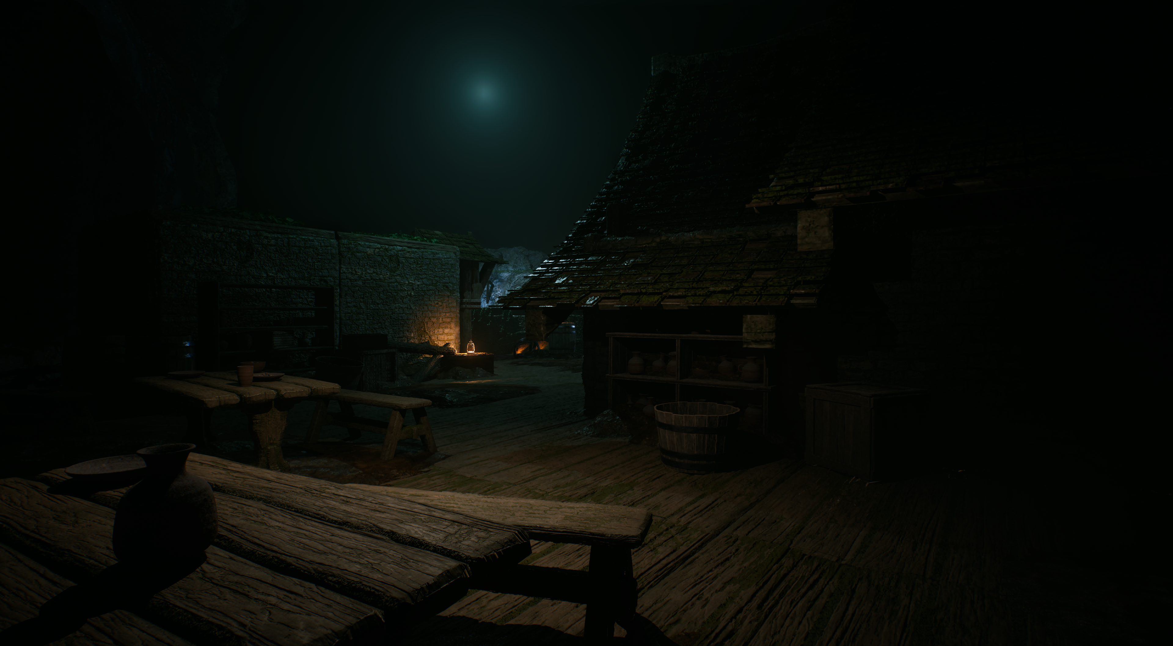 This environment was created as part of the Black Salt world. A dark, atmospheric cave inspired by pirate hideouts and coastal taverns. It is built entirely from a modular kit of 90 unique pieces, designed for maximum flexibility and world-building efficiency. All assets are highly optimized, featuring low-poly geometry with baked normal maps from high-poly sculpted models, to preserve visual fidelity while maintaining top performance in real-time rendering. The scene was assembled and lit in Unreal Engine 5, using a combination of baked and dynamic lighting to achieve a moody, cinematic atmosphere.