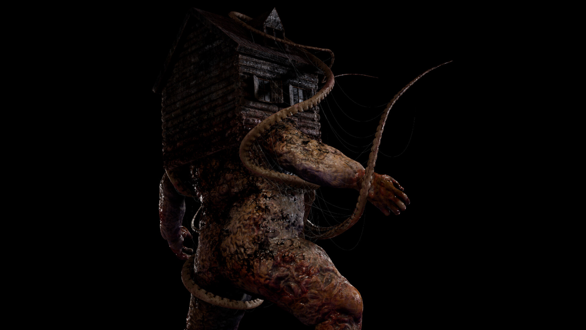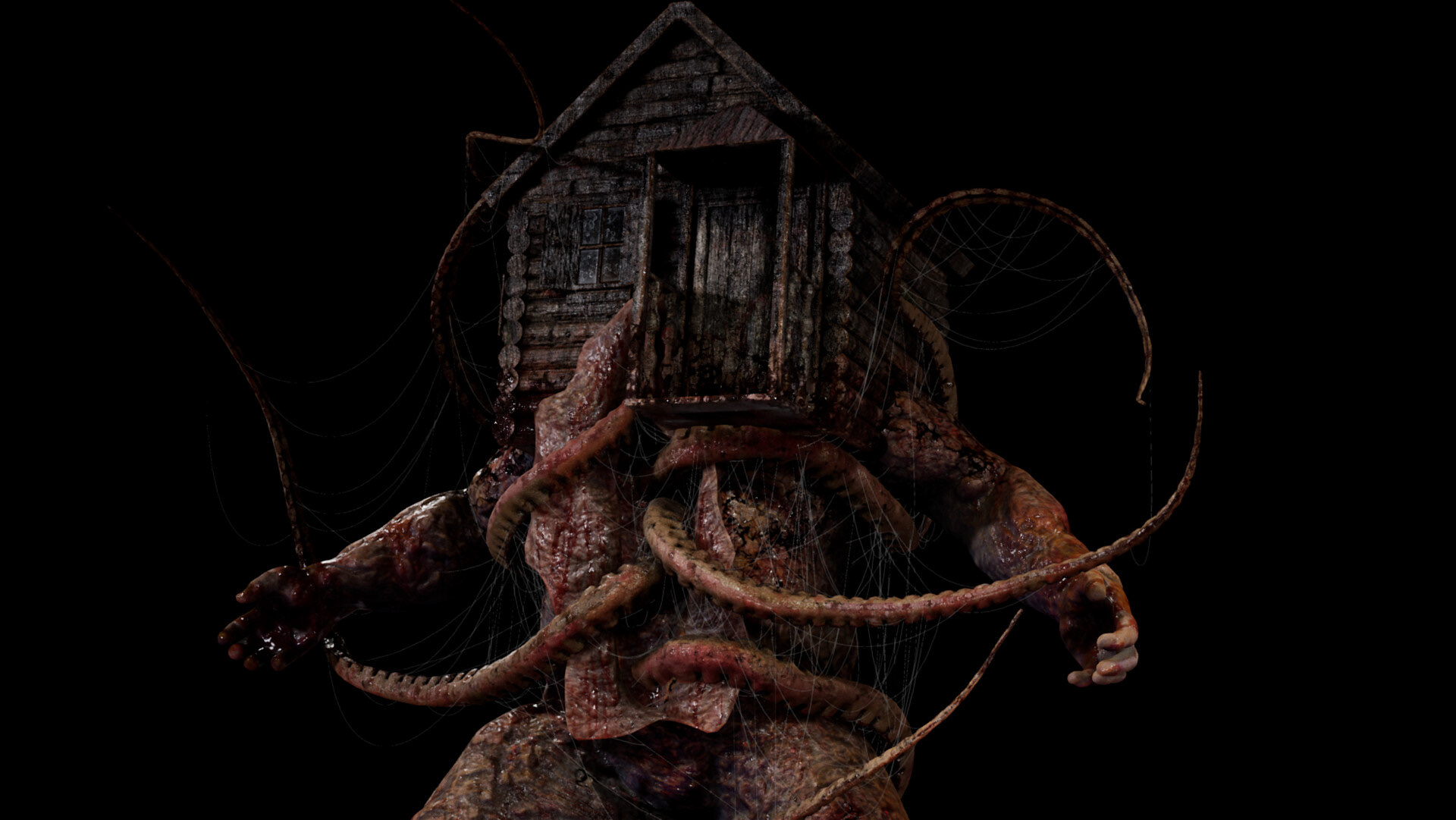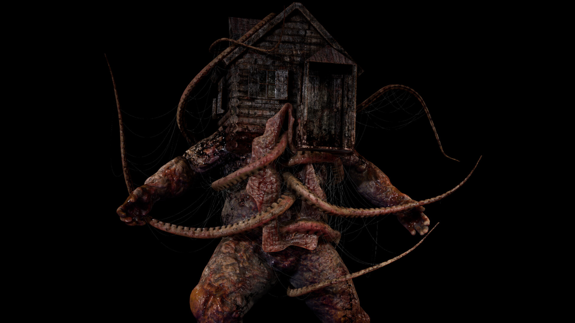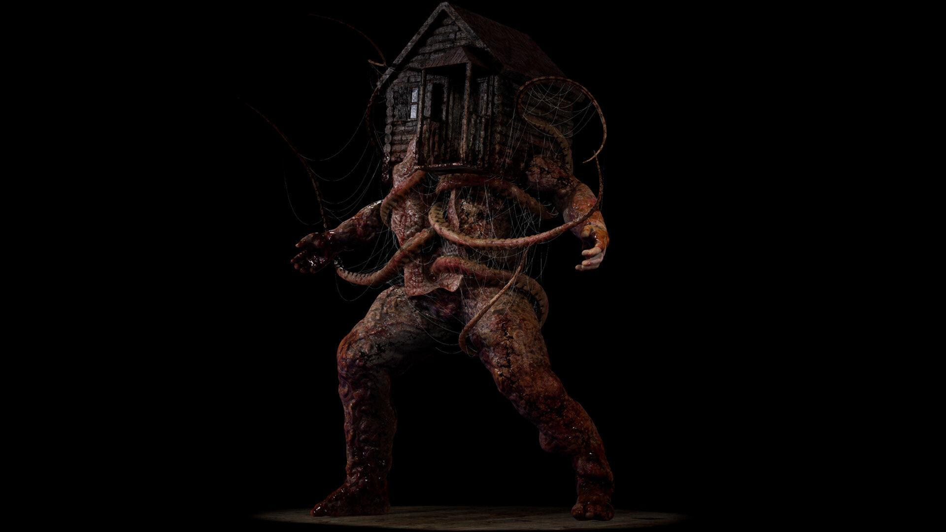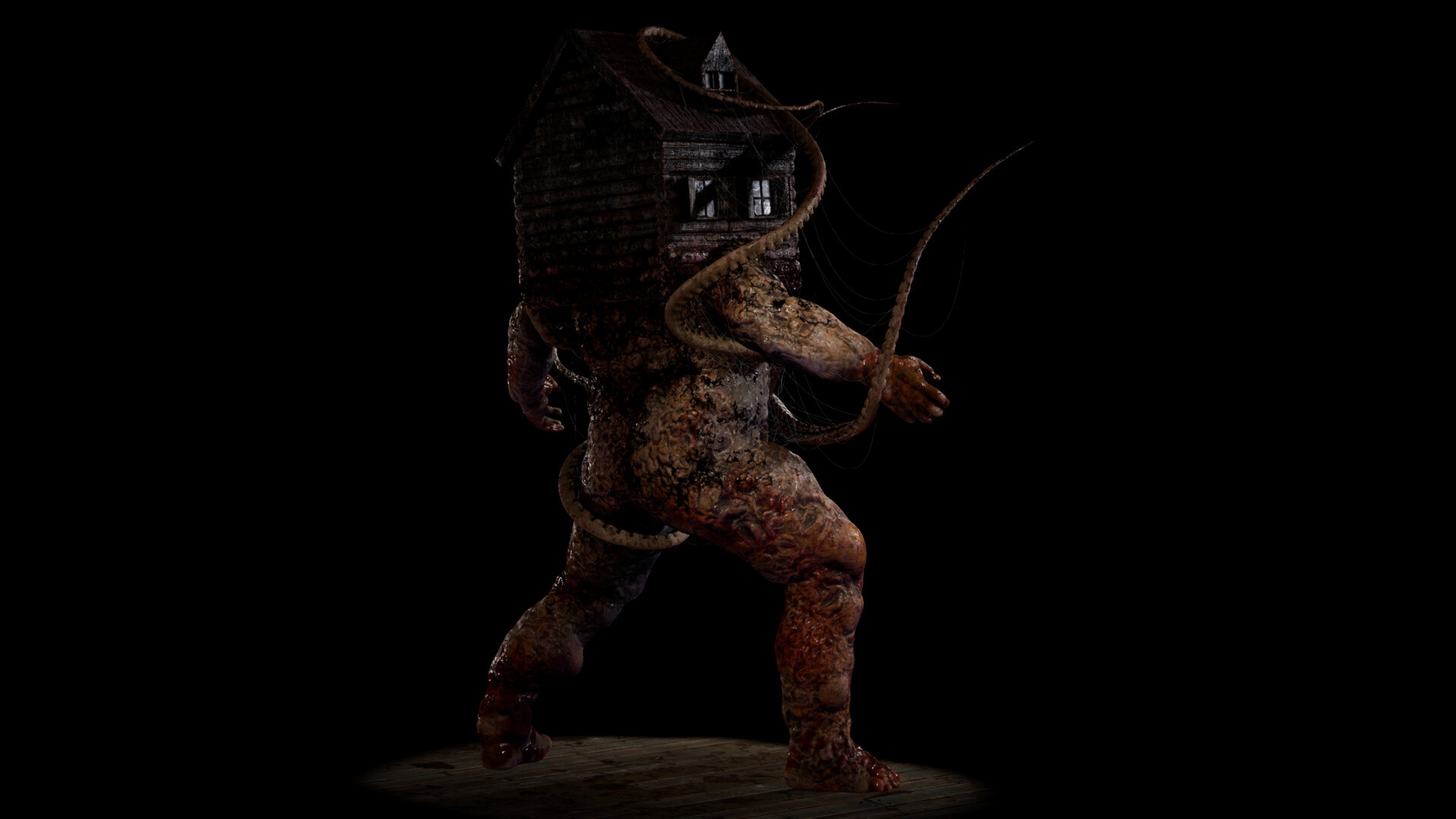 The Dollhouse Monster was created as part of a personal video game project exploring the themes of guilt, memory, and psychological horror. The game takes place inside the protagonist’s mind, where his unresolved guilt manifests as physical nightmares the innocent toys of his children, once symbols of joy, have now twisted into monstrous reflections of his inner torment. This creature embodies the weight of remorse: a rotting humanoid form fused with a decaying dollhouse, its walls and wires merging with flesh and sinew. The design blends architectural structure with organic horror, representing how the home itself once safe and warm has become a prison of regret. The model was sculpted and textured to emphasize grotesque realism and symbolic storytelling, with a focus on material contrast: aged wood, decaying flesh, and parasitic tendrils that symbolize the psychological decay spreading within the character’s mind. Software Used: • ZBrush • Maya • Substance 3D Painter • Unreal Engine